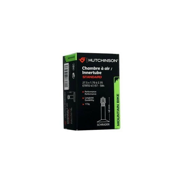 La chambre à air Hutchinson Standard est un modèle résistant à la crevaison et sans poids excessif. Avec une épaisseur de 0,9 mm et conçu avec du butyl de première qualité, la Standard atteint parfaitement cet objectif. De plus, elle possède une valve qui conserve efficacement la pression.