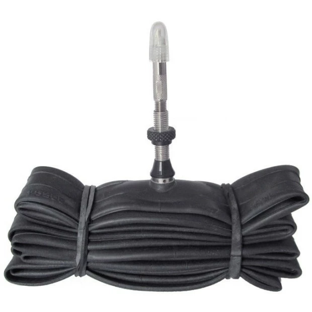 Chambre à air Schwalbe Procore. Le système Procore permet de rouler avec un pneu faiblement gonflé, tout en ayant une chambre à air gonflée à 4-6 bars. Cette chambre à air bi-valve est idéale pour le VTT.