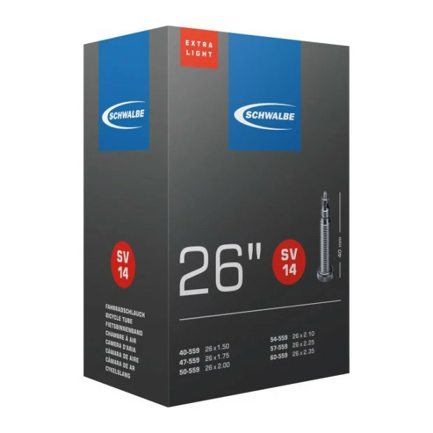 La chambre à air Schwalbe AV 14 Extralight est une chambre air idéale pour les VTT de 26″.